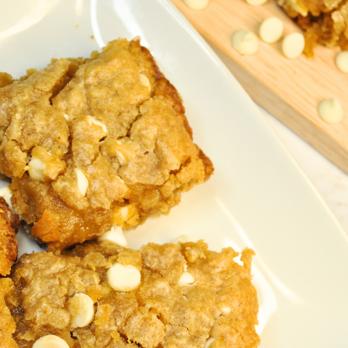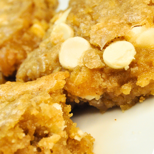 These chewy, golden bars are packed with that buttery vanilla flavor you expect from a Blondie. Whether you’re a seasoned baker or a novice in the kitchen this recipe is sure to become a go-to favorite as the entire family won’t be able to get enough.
