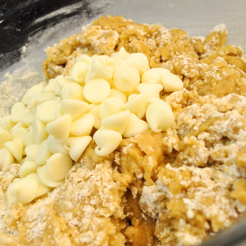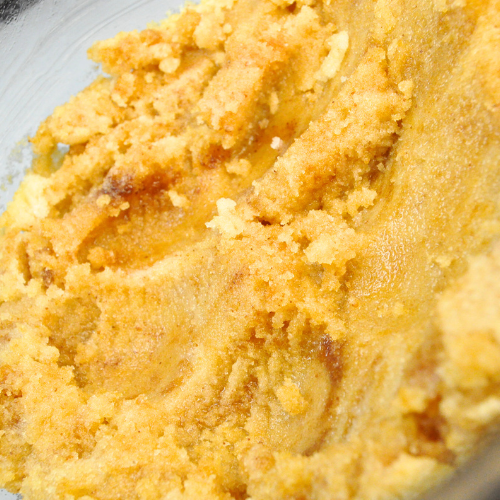 - Combine melted butter, brown sugar, and white sugar in a large mixing bowl.