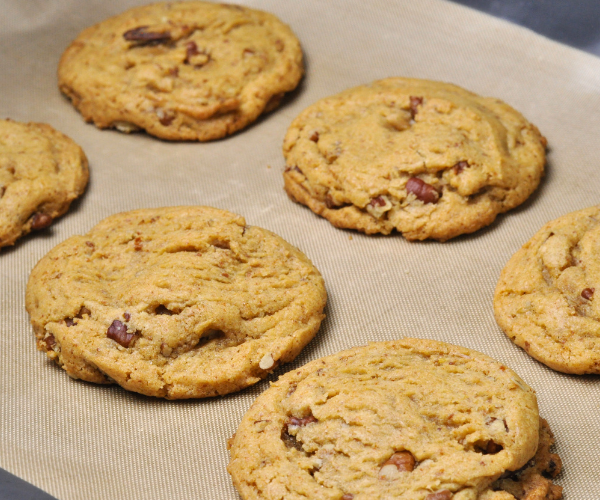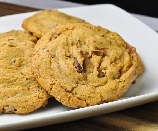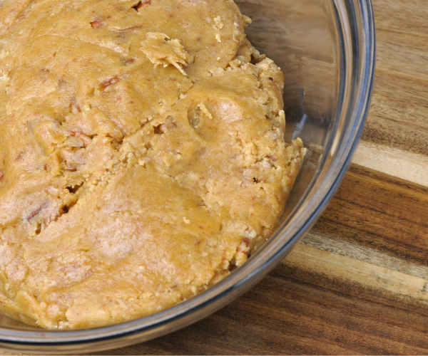 - Now add in the flour, cornstarch, milk powder, baking soda, baking powder, salt, and spices if using. Mix ingredients until dough forms. Fold in the pecans then chill the dough for 30 minutes.