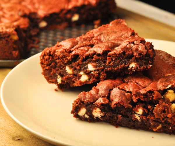 - Preheat oven 350F. In a large mixing bowl, whisk together eggs, brown sugar, vanilla extract, and red food coloring until combined.