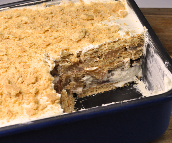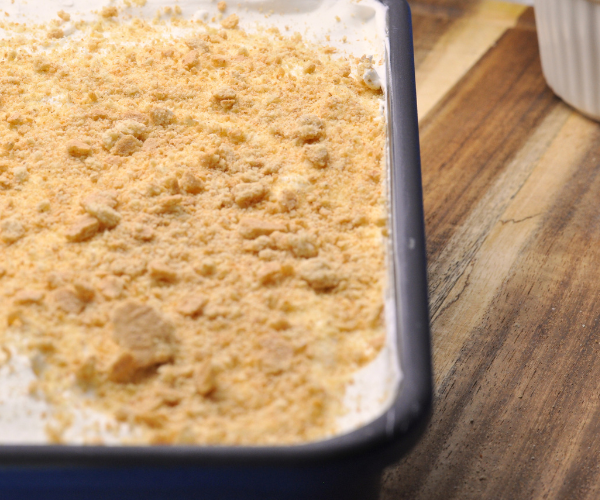 - Cover with plastic wrap then refrigerate for at least 4 hours so graham crackers can soften, for best results chill overnight.