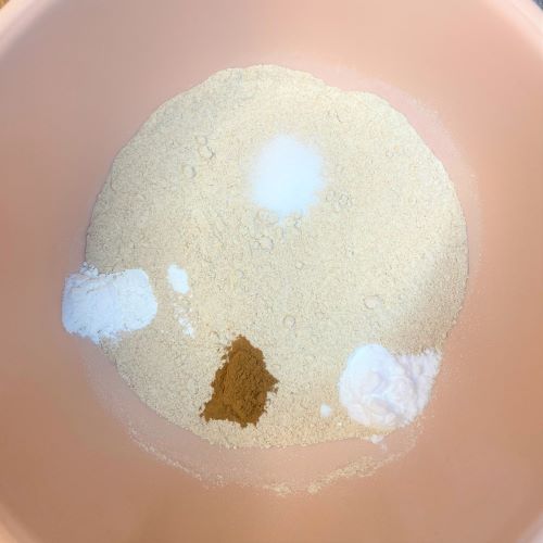 Combine flour, baking powder, baking soda, salt, and cinnamon in large mixing bowl.